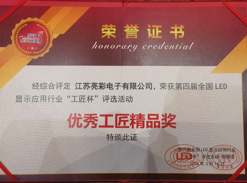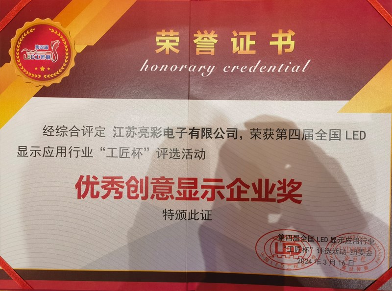 此次評選,江蘇亮彩榮獲“優秀創意顯示企業獎”、“優秀工匠精品獎”。既是對江蘇亮彩過往成績的回顧與肯定,也是對未來工作的鼓勵與鞭策。