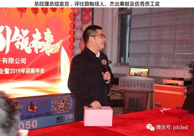感謝嘉賓深情厚意的致辭同時給予了江蘇亮彩美好的祝愿,讓我們以更加沉著,自信的心態來迎接新一年的機遇和挑戰。最后有江蘇亮彩總經理致閉幕詞宣布2018年度總結表彰會2019年迎新會圓滿落幕!