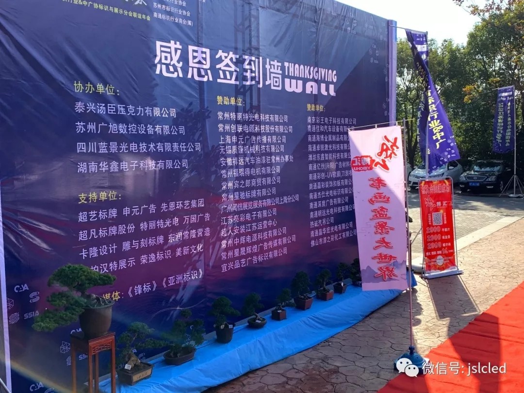 2019年11月28日,感恩節的當天,在南通普天同慶大酒店隆重舉辦了江蘇標識行業&中廣標識與展示分會聯誼年會。由江蘇省標識行業協會、中國廣告協會標識與廣告分會、蘇州市標識行業協會、常州標識行業協會、南通市標識行業協會(籌)聯合主辦,是整個江蘇省標識人的盛會。